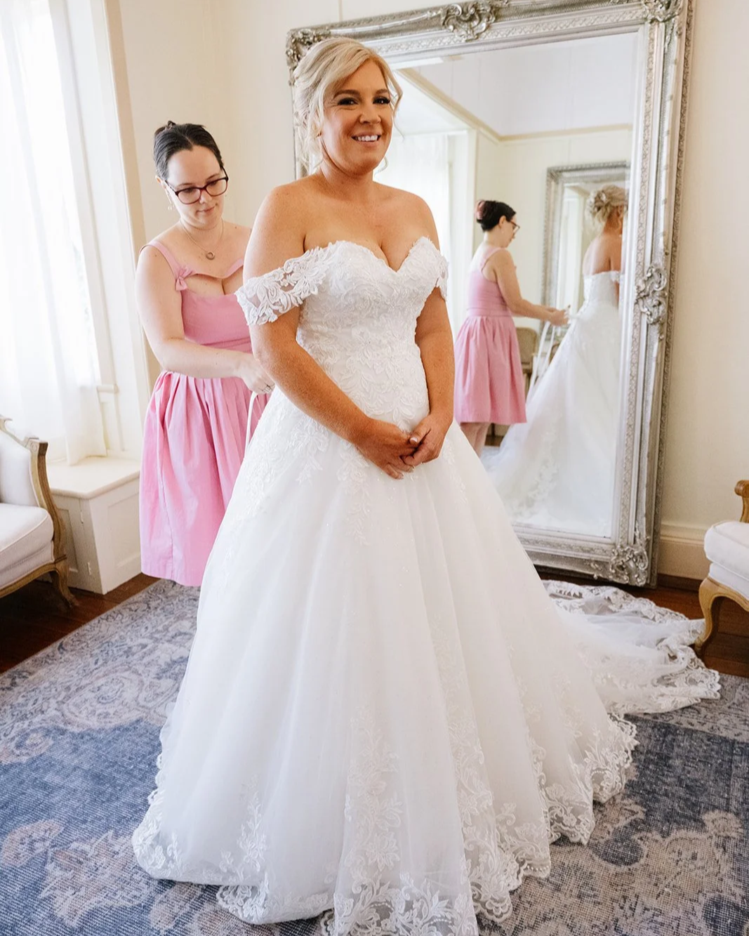 Good to know: Bring your wedding shoes (and petticoat if youβre wearing one) so we pin to your real height.